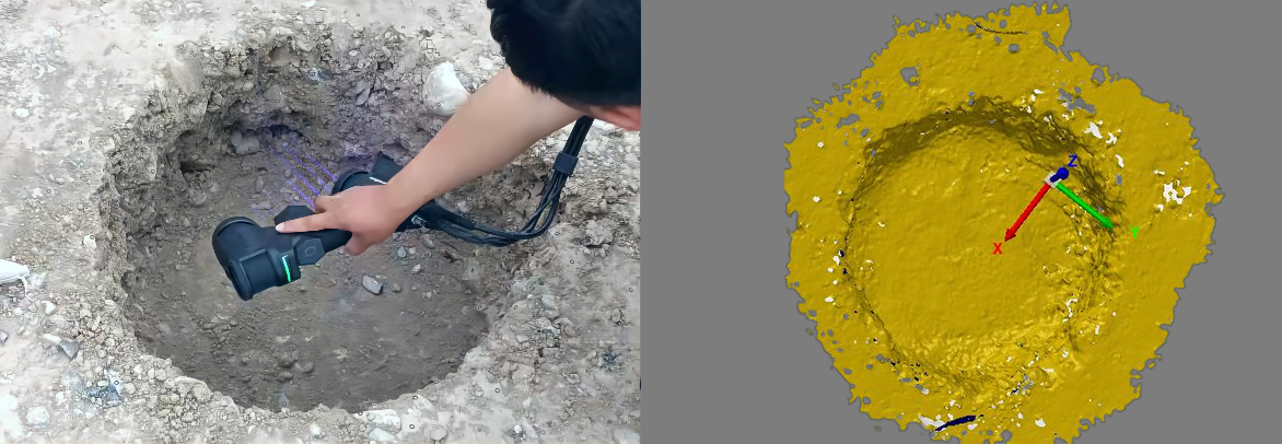 ◎使用MarvelScan掃描在機(jī)場(chǎng)地基上挖出的土坑,以高達(dá)135萬(wàn)次測(cè)量/秒的速率,可以一次性精準(zhǔn)、迅速完成不規(guī)則土坑的三維數(shù)據(jù)采集,且數(shù)據(jù)方便傳輸與保存,具有永久可追溯性;