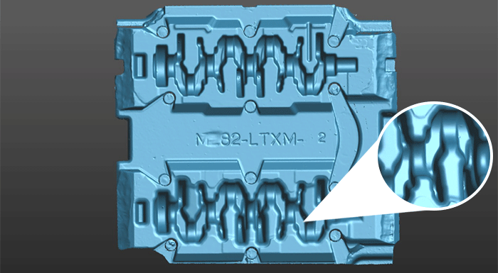 ▲曲軸模具掃描數(shù)據(jù):左右件同時掃描共耗時6分30秒
